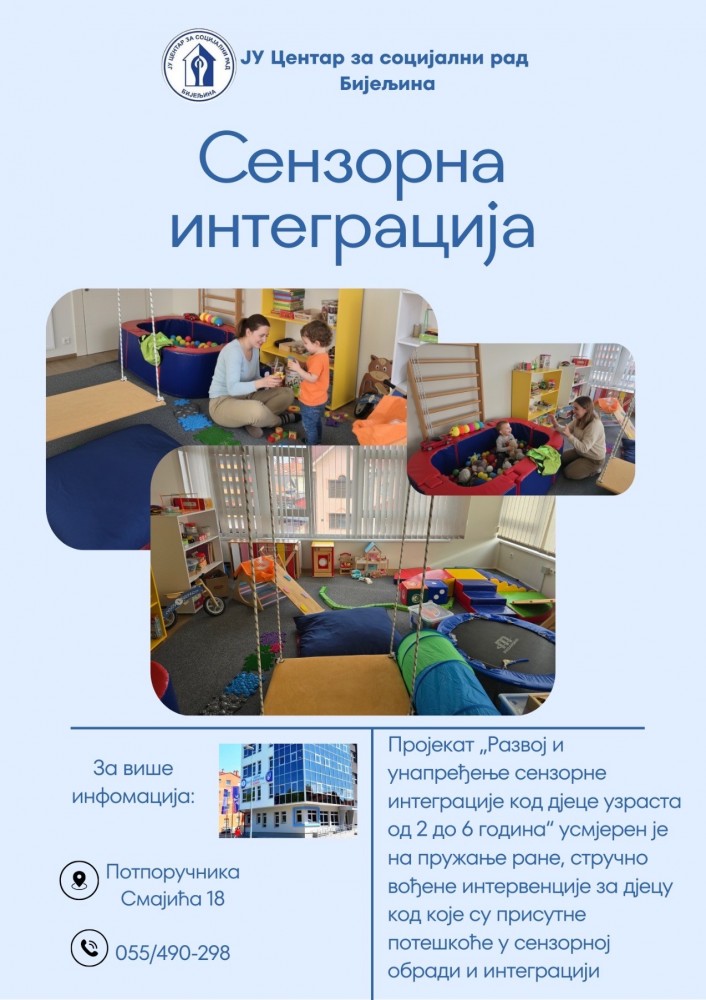 ЈУ Центар за социјални рад Бијељина од 1. марта реализује пројекат „Развој и унапређење сензорне интеграције код дјеце узраста од 2 до 6 година“,